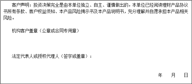 您签署本风险揭示书、理财产品协议书,并将资金委托给乐山市商业银行运作是您真实的意思表示。本风险揭示书及相应的理财产品协议书、产品说明书、客户权益须知将共同构成贵我双方理财合同的有效组成部分。